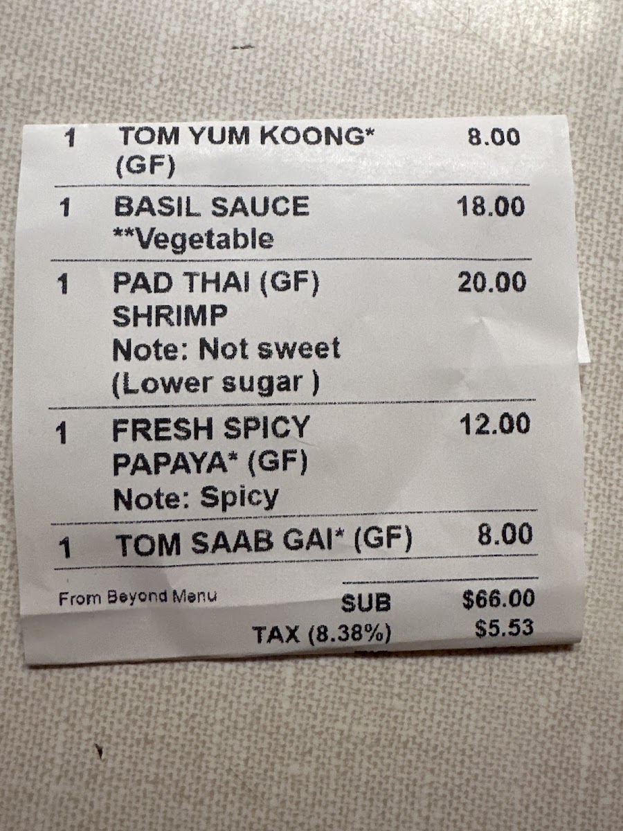 Highlights like Panang Curry and Drunken Noodles provide satisfying, hearty options for those seeking warmth and spice, while lighter choices such as Thai Spring Rolls and Papaya Salad bring refreshing contrasts. The menu also features a variety of rice bowls and snacks—like Crispy Pork Belly Rice Bowl or Bangkok Wings—that are perfect for either a quick takeout or relaxed dining with friends.